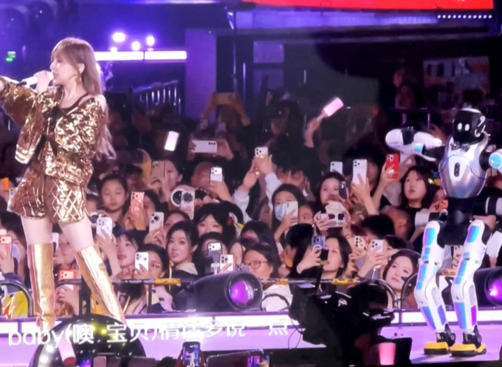 甜心教主王心凌,胜仗用机器东说念主给她伴舞。当代感太满了。